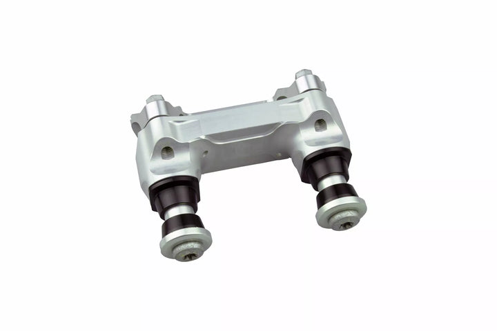 Conçu pour remplacer les pinces à triple OEM montées sur la barre en caoutchouc, fournit un contrôle direct et empêche la torsion de la barre en cas de crash, se présente en quatre morceaux de cônes solides, CNC usiné et anodisé