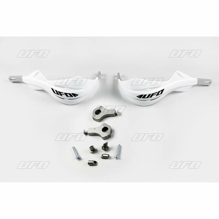 Les protège-mains "ALU" avec un kit de montage d'initiation en aluminium: 780708 (Ø22 mm) ou 780709 (Ø28 mm) Couleur: blanc