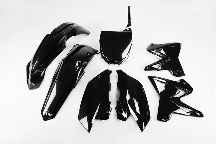 Les plastiques d'OVNI sont réputés pour leur qualité et leur résistance à l'utilisation hors route. Ils sont conçus comme la plastique OEM et sont faciles à monter. Ils sont utilisés par les meilleures équipes de MXGP d'aujourd'hui et font des champions du monde. OEM Typekit contient: Fenderrear Fenderradiator CoveSide Panels front Plate en UV, Choc et Torsion résistant au plastique Injecté Couleur: Noir