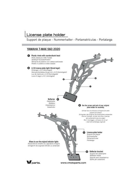 V Poste de plaque d'immatriculation des pièces Black Yamaha T-MAX 560 C8-PY034