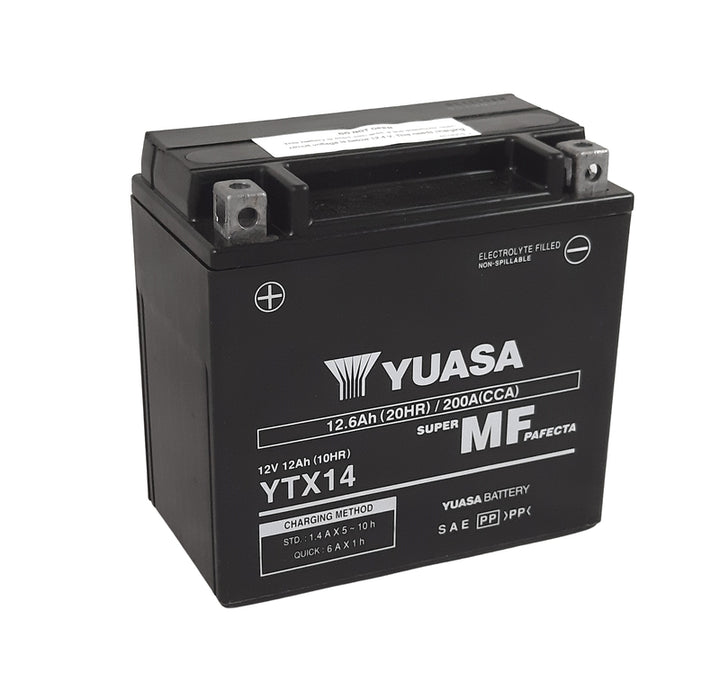 Yuasa YTX14-FA est un Batterie AGM hautement performante, activé en usine et prêt à être utilisé directement. C'est idéal pour motos, motoneiges, quad les vélos et autres véhicules Cela nécessite Puissance de départ fiable, durée de vie longue et maintenance minimale.