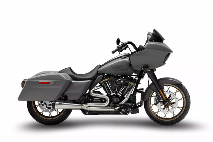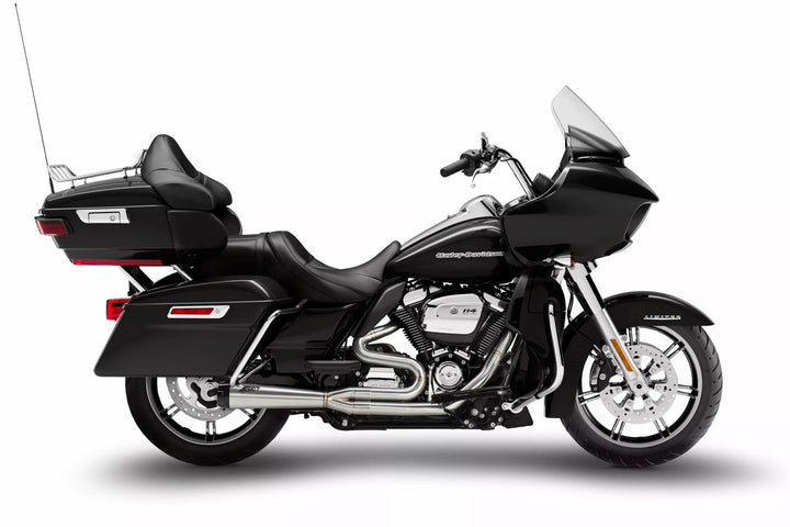 Kit complet 2: 1 pour Harley-Davidson Tourings (Street Glide / Road King / Road Glide), le kit complet 2 en 1 est un système d'échappement complet en acier inoxydable AISI 304, composé de têtes, une courte conique à cône et une version homologuée à l'anodization noire, un kilométrage noir Matte ᆴ et une finale de poids, la fin de la barre ( La version homologuée Euro 4/5, par rapport au système d'échappement OEM) avec une version Real Inc. Système d'échappement OEM)
