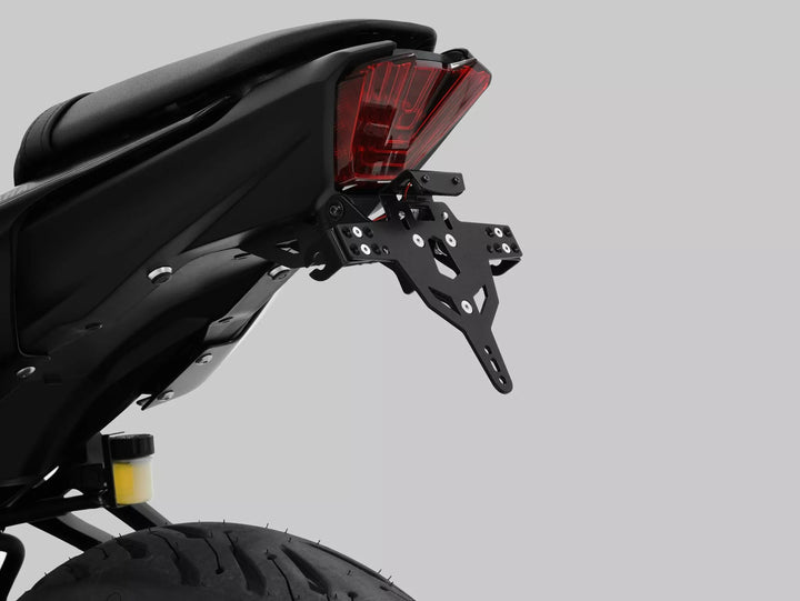 Le support de plaque d'immatriculation est extrêmement durable et à l'épreuve des intempéries., Black Powder enduit. , Le support de plaque d'immatriculation peut être utilisé pour tout type de plaque d'immatriculation (largeur de 175 mm)., Aucune modification du carénage requise., Réglage sans étape de l'angle de râteau., Prise en charge de l'indicateur réglable en 3 positions. Plaque., Supports d'éclairage indicateur spécial (vendus séparément) requis pour les voyants d'indicateur de stock., Kit comprend: 1 porte-plaque d'immatriculation incl. Kit de montage., Light Plaque d'immatriculation LED "E Approsved" incl. Support., Back Light avec support. De: Suisse, Pologne et Irlande.