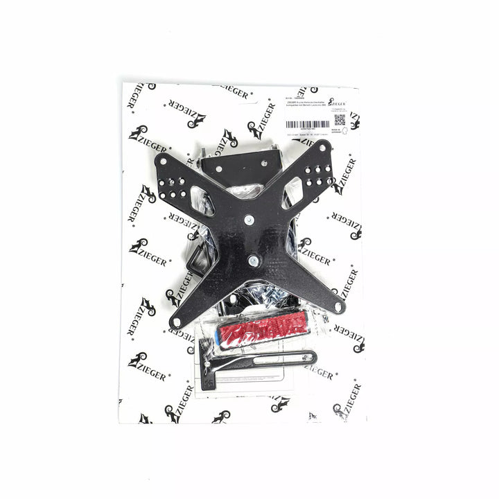 Aucune pièce de cadding ne doit être modifiée, la plaque d'immatriculation conservable pour chaque type de plaque d'immatriculation (largeur 175 mm), l'angle d'inclinaison en poudre noir est entièrement ajusté contre la caisse pour un support plat de la plaque d'immatriculation