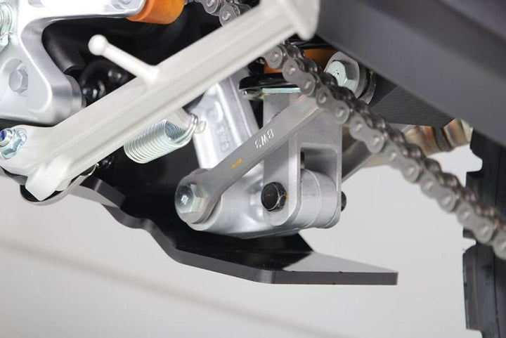 Made of Plastic Hdpe 8mm Thick, The Adventure Skid Plate Has Successfully Passed The Track Test and Will Protect Your Machine The Best Way! Frame Protection, Cases, Water Pump and Also The Linkage. The Axp Skid Plate Weights 2.55kg and Absorbs Impacts and Deformations. You will becover How Quiet The Plastic Is Compared to Alloy Plates. Made for the European Model Euro5, This Model Will Also Fit The Previous Frame But With A More Important Gap at the Front.