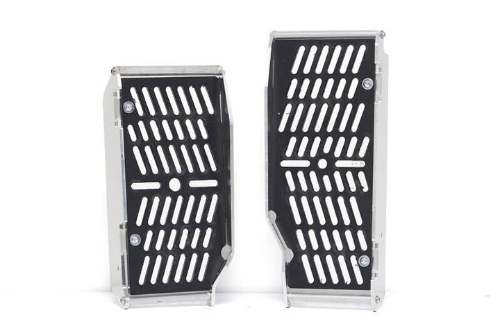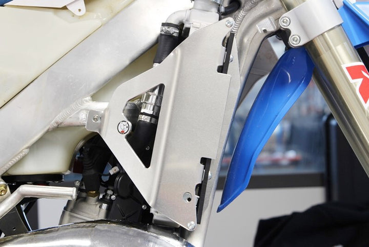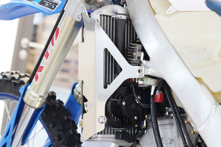TM Racing EN250fi es 2T - EN300FI ES 2T Xtrem Radiator Guards - 1.3kg. Especialy Made for Hard Enduro and Developted With Our Pro Riders in All Conditions, These Radiator Guards Victim A Maximum of Protection by Wrapping the Radiators and Being the Frame To Provide A Maximum of Rigidity and Limiting Déformations. The must is the hdpe plastic 6mm thick and removable protection grid! This one will help reinforce more again the resistance in case of impact, does not limit the airflow and provides a perfect radiators cleaning by removing the girls in less than 30s (See Video Below). The Base of the Product Still The Same, Using Aluminum 4mm Thick With Spacers Offering A Strong Rigidity. Fits on the tm racing en250fi es 2T - EN300FI ES 2T.