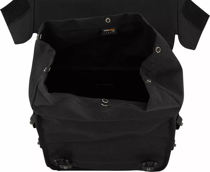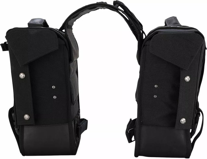 Roll-Top Closure and Snap/Hook-and-Loop, High-Quality “Moto Centric” Speed ​​Buckles and Zipper, Anti-Flail Snap System ”, Adjustable Yoke Center Section that Holds the Two Bags Together, Widomed or Narrowed to Fit. Your bike in less than five mines, leather paneling