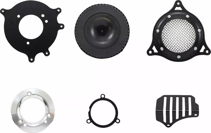 Same Internal Components as the Cobra Powrflo Air Intake, With the Outside Cover Replaced with a Machined Aluminum Industrial-Looking Frame That ECHOES COBRA'S POPLE RACE PRO MUFFLERS, INCLUDES ALL THE FASTENERS, SEALS, SEALS, BACKING PLATE PLATE AND MUNTWARE HARDWARE HARDWARE HARDWARE HIGHTING PLATE PLATE PLATE PLATE PLATE TO MAKE TO MAKE TO MAKEED Ensures The Best Air Intake and Maximum Protection for Your Engine, Unique Internal Venturi Design Promotes Maximum Airflow, Formed Stainless Steel Mesh Insert Keeps Out Bugs and DeBris, Made in the USA