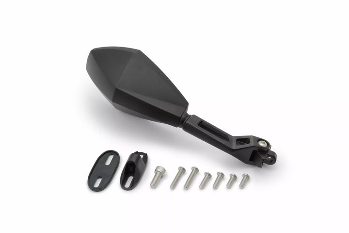 ECE-Approved., Material Mirror Head: ABS, Material Mirror Arm: Aluminum, One Black Mirror for the Right/Left Side to Mount At The Handle/Fairing
