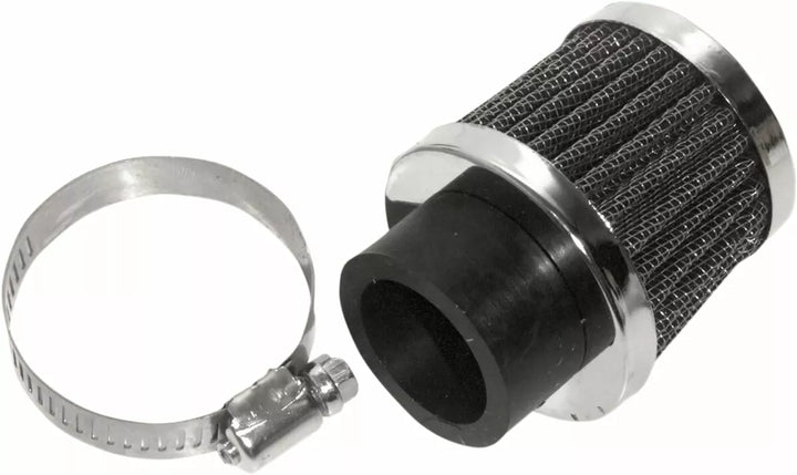 Includes Stainless Steel Clamp for Secure Attachment, Quality High-Flow Paper Elements with Chrome End Cap, Width is the Largest Diameter of Filter Media, Check Carb Inlet Outer Diameter Being Order