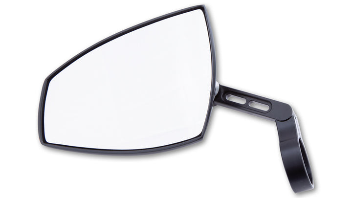 The Handlebar End Mirror Has Various Adjustment Options and Can Be Mounted in Various Ways On The Motorcycle. When Viewed From the Handlebars, It Can Be Mounted Pointing Up or Down. Towards The Clamp, The Mirror Arm Can Be Swivelled Sideways by Means of an Adjustable Joint and a Ball Joint On The Mirror Housing Can Be Adjusted In Angle For Optimum Rearward Visibility. The asymmetrical Mirror Head Can Be Converted to Your Staff Taste and Can Be Rotated 180 Degrees. Suitable for all handlebars with 7/8 inch and 1 inch outer diameter.