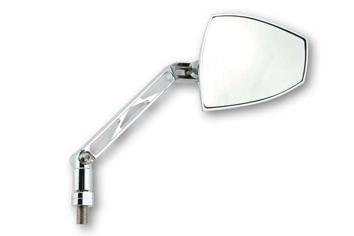 The Highsider Wave Mirro's Visually Complement Any Motorcycle Model in the Colors Silver, Black, Red, Gold or Chrome. SMALL COLORED ACCENTS BETWEEN THE MIRROR HEAD AND ARM ADD COLOR TO YOUR MACHINE. The asymmetrical Shape and the CNC MILLED LINES OF THE CASE CREATE BOTH A MODERN AND A CLASSIC LOOK. The Mirror Head is supported by an aluminum arm, which is connected classically by m10x1.25 adapter is screwed into the handle bar fitting.