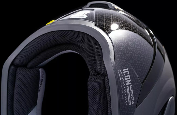 Injection Molded Polycarbonate Shell for Strength, ProLock ™ Positive Shield Locking System, Continuous Venting System, FAG-FREE ICON OPTICS ™ Shield with Rapid-Reale ™ System, Sculpted NECK ROLL, Internal AirFlow Geometry, Internal Drop Hield Visor must only be used while the main face shield is in the fully closed position, removable Molded Breath Deflector, Removable Hydradry ™ 3-Piece Moisture Wicking Liner, Internal Speaker Pockets Work With Icon's R.A.U. Bluetooth Device, Includes Clear & Dark Smoke Icon Optics ™ Shield, Includes Dark Smoke Dropshield ™, Includes Black AirForm Chin Vent ™