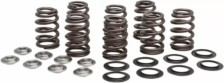 Progressively Wound Springs Using Kobe Super-Clean, Chromium Silicon (CRSI) Based Wire That is Heat Treated and Shot Peended, Tight-Tolerance, FEA-Designed Hardended Steel Posi-Loc ル Style Upper or Titanium retainers to altaine Through ", Heat Treated (H.T.) Steel Basewashers are designed to fit on top of eiter the oem or kpmi tophat seals in this kit, Made in the USA, Kit uses oem-style valve Keys (Sold Separately). With KibbleWhite Precision Machining Inc. (Kpmi ᆴ) Spring Kits.