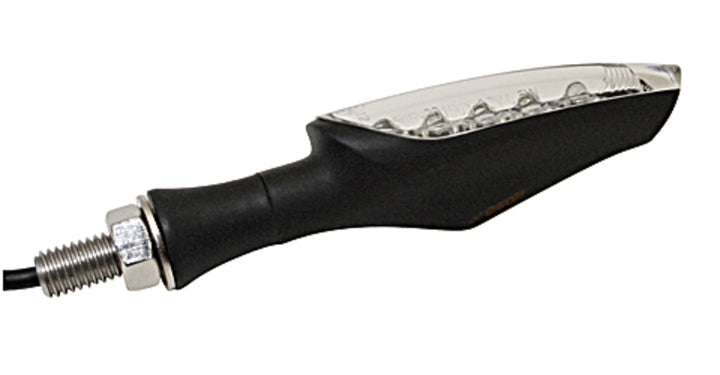Give your high a modern touch with this compact and elegant LED flashers from koso. Made in Matt black aluminum And equipped with clear LED technology behind a lightly toned glass, it offers a stylish solution for both front and rear.