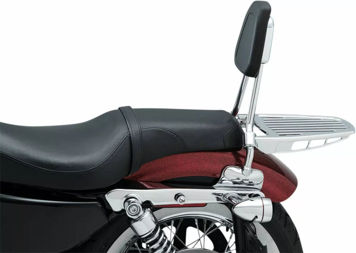Durable All Steel Construction (Mounts and Uprights) With Premium Chrome Plating, Easy to Install With Included Hardware and Mounts, Includes Cushioned Backrest Pad Made From Weather and UV Resistant PUS MATERIAL Luggage Rack (#1510-0960) Sold Separately