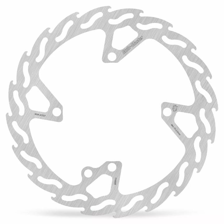Flame Shaped Valenting Slots And Outer Perimeter Ensure An Equal Amount of Contact Surface Between The Brake Pad and Disc Throughout The Who Rotation of the Disc., Smooth and More Predictable BRAKING ACTION WHICH ALLOWS YOU TO BRAKE HARDER. Double-grinded for Perfect Fitment and Flatness, for Best Performance We Recommend Using Moto-Master Brake Pads with the Matching Pad Compound That Best Suits Your Type of Riding.