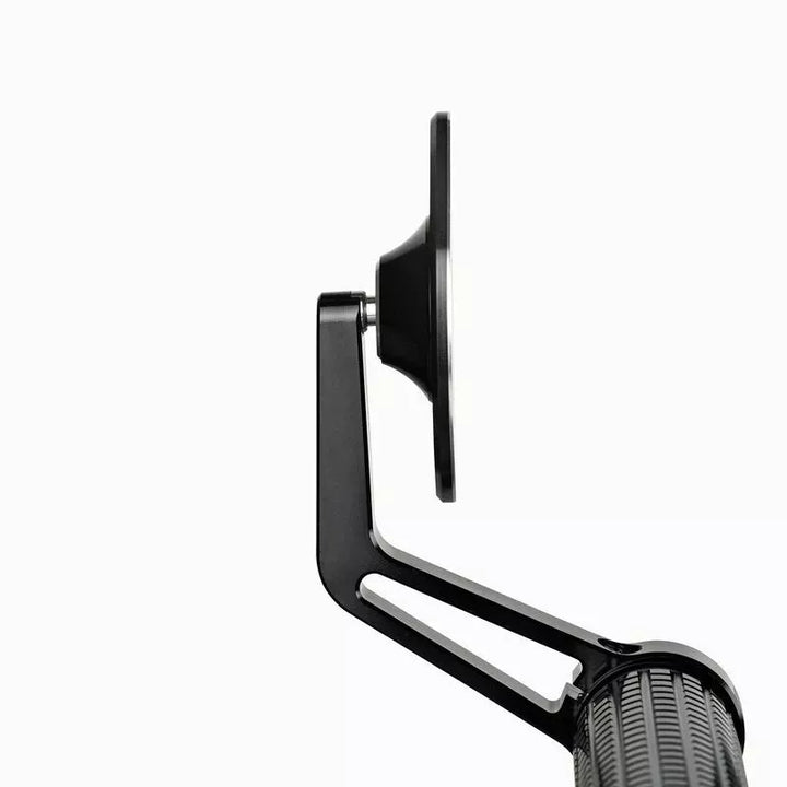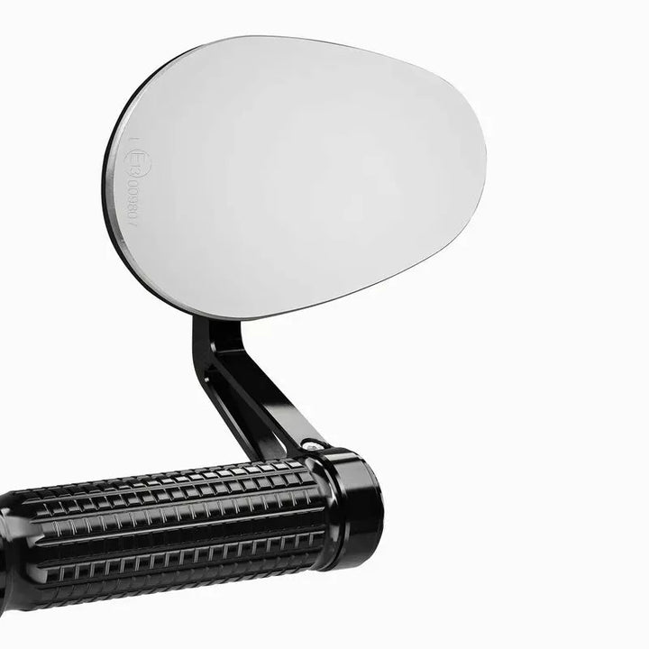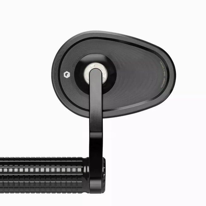 The Handlebar End Mirror with Ece Marking Can Be Mounted Above or Below the Handlebar. The Angle of the Mirror Arm Is Rigid., Our Glassless Mirror Series Mo.view is Unique in the World. The Special Feature of Our Mirrors is the Patented Mirror Surface, Which Is Worked Directly From the Metal of the Body. The Aluminum itself is the Mirror Surface., The Mirror Body Itself is Very Thin and Light, results in a Weightless Design Without a Rim or Frame., The Convex Mirror Surface Is Produced by Fly Cutting Using Diamond Tools on Ultra-PrepIONS in Berlin. It is then made resistant to oxidation, corrosion and abrasion by an elaborate plasma coating in a vacuum., The mirror body, mirror arm and the clamp for the handleable end are milled from solid aluminum on cnc machines and anodized to a high quality. All Screws are Made of Stainless Steel. The precise ball joints the mirror to be adjusted Comfortable and very stable. Glass Breakage or Glass Falling Out is Simply Not Possible., The Handlebar End Mirror Can Be Mounted Above or Below The Handlebars. , The small arm can be swivelled. The Mirror is suitable for the right and left side. It can be mounted directly on the handleable end (22 mm and 1 inch) or, if the grips and fittings cannot be moved, using the mo.view bar adapter., Mirror body width: 114 mm., Mirror Body Body Height: 80 mm. 1 Inch Handlebars., Thickness of the Mirror Body Without Ball Head: 4.5 mm., CLAMP WIDTH: 12 mm., Weight: 150 g, Scope of Delivery: 1x Rear-View Mirror Mo.view Club 130 (With Ece Marking) With Arm, 1 X CLAMP & ARM.