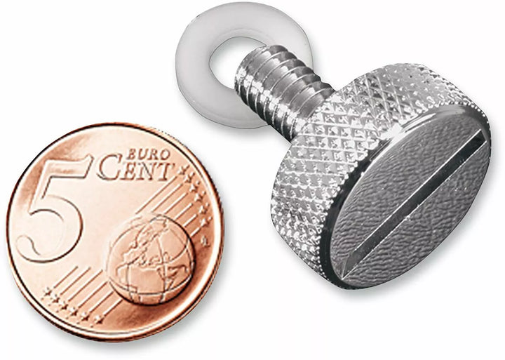 Chrome One-Piece Steel Construction, Wide, Deep Radiused Slot Accepts Quarter or Flat Screwdriver, Raised Diamond Knurl On Edge, 1/8 "Longer for Easier Seat Installation with Saddlebags or Luggage Racks, Includes Nylon Washer