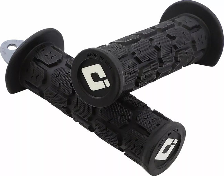 Chunky, oversized grip provides extra shock absorption and improved control, larger grip diameter delivers extra padding, rugged surface patter for better traction, extra-large raised pads provide shock absorption with deep grooves to channel 1st passpan and debris, Full-Wrap Hand Guards, Preinstalled ODI V2.1 Lock-Jaw Clamps With Screws, Patented Lock-On Grip System ™ Design Delivers Easy Installation and Ensures 100% Slip Free Performance