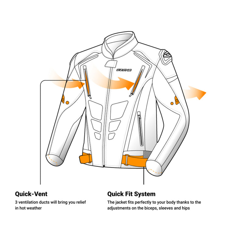 Ozone Pulse is one Trinally protective MC jacket with Sporty design, high security level and adjustable comfort. With Sliders on the shoulders, CE-certified protection and a waterproof membrane, is it both Functional and stylish - Ideal for motorcyclists who want to combine sporty aesthetics with security and comfort.