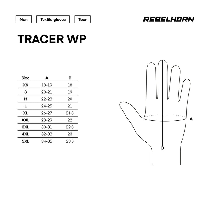 Rebelhorn Tracer WP is the perfect glove for long -distance trips and touring in all weather conditions. Waterproof, protective and comfortable, with practical features such as Visor dryer and touchscreen compatibility, make it every trip both Safe and comfortable.