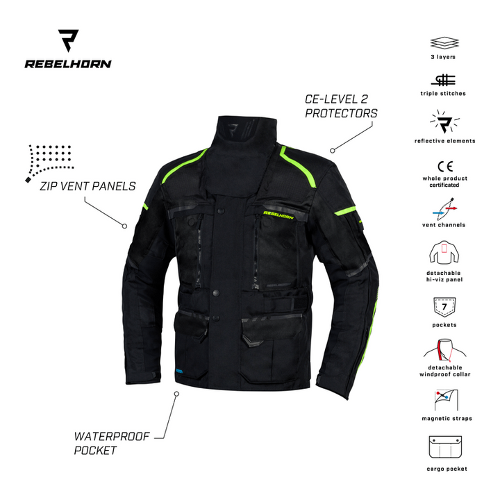 Rebelhorn Textile MC jacket Cubby IV Black /Gray /Flu