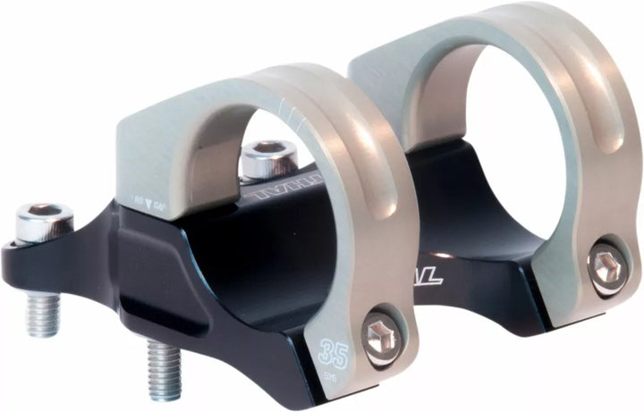 Stem Combines High Strength With Ultra-Low Weight; The Use of Two Independent, C-Shaped Handlebar Clamps Allows The Stem Body Material To Be Reduced to A Minimum, Whilst Mainting An Incredible Stiff and Strong Structure, CNC Machined 6082 Aluminum Aluminum Body 7075 Aluminum Clamps 6-Bolt Design, U-Shape Cradle Clamp Eliminates Handlebar Stress Raisers Found With Traditional Stems, Ultra-Wide 64 mm Clamp Width