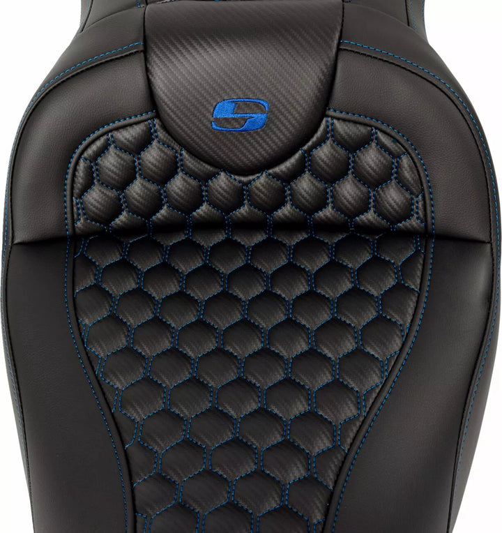 Each Seat Combines a Gel-Core ル Interior and Pro-Foam ル To Create A Foam With A Balance of Compression and Resilience Gear Long Distance Comfort, Pro-Foam ル Unique Molding Process Creates, See Elevae Resistant, Self- Durability as well as Comfort, Honeycomb (HC) Pattern Incorporates Modern Geometry In A Stylish Seat Cover, Saddlegel ル In Front and Real Reduces Tailbone Pressure and Increases Circulation and Comfort for Both Driver and Passenger, Designed and Made in the USA