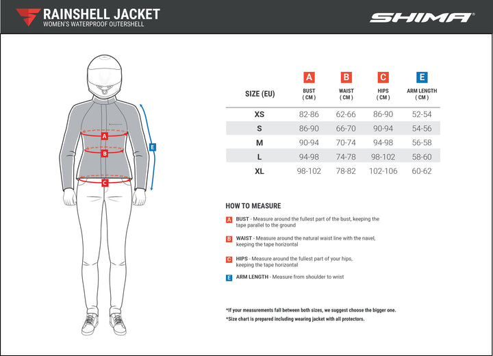 The Rainshell jacket is the perfect, compact and light rain jacket that you can easily carry with you in your hand luggage. If you have a Shima Openair motorcycle jacket, you will find a special pocket dedicated to this model. You can easily wear this model over your regular motorcycle clothes. Due to the universal cut and appearance of a regular jacket, you can easily take it with you to the city or a mountain trip. It is characterized by a very high waterproofness of 500 mm and a breathability of 3000 g/m2/24h. It is the perfect addition to summer jackets in a layer in mesh, thanks to which no weather will surprise you on the route.