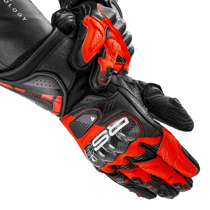 Made in goatskin And reinforced with kanguruliers in the palm, combines RS-3 durability with agility. You get SAP slider in the palm, hard knuckle protection with carbon fiber reinforcement, Mini-slider at the little finger, as well TPU protection on your fingers. Armorplus-bumping foam And reinforced areas protect where it is needed most - even in hard contact with the asphalt.