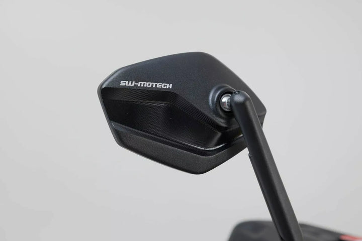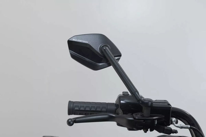 SW-Motech Manufactures The Adjustable Mirrors In A Modern and Flat Design From High-Quality Forged and Black Anodised Aluminum. , The Mirror Arms Consist of Continuously Adjustable Elements and Can Each Be Extended by 30 Millimetres. This Allows the Height and Length of the Mirrors to Be Adjusted to the Requirements of the Respective Pilot., This Sport Mirror Set has a long mirror arm. Mirror Arm Length: 182 mm., Modern and Flat Edge Design., Partial Areas and Functional Surfaces milled., 4 Different Adjustment Possibens for Best Possible Alignment., Stepless Rotation and Includes of the Mirror Arm. Mounting on Existing Mirror Connection., Scope of Delivery: 1 x Mirror Set Sport, 1 x Mounting Material for Mirror Set & Mounting Instructions.