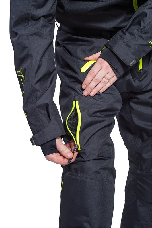 In order to vent even more, the overalls are equipped with six ventilation openings which when closed are waterproof which all garments are zippers.