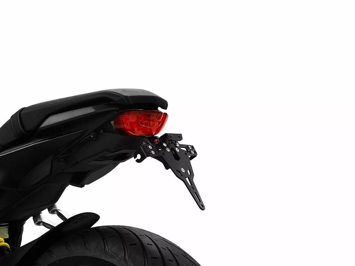The License Plate Holder is Extremely Durable and Weather Proof., Black Powder Coated. , The License Plate Holder Can Be Used For Any Kind of License Plate (175mm Width)., No Modification of Fairing Required., Stepless Adjustment of Rake Angle., Indicator Support Adjustable in 3 Positions. Plate., Special Indicator Light Mounts (Sold Separately) Required for Stock Indicator Lights., Kit Includes: 1 License Plate Holder Incl. Mounting Kit., LED License Plate Light "E Approsved" Incl. Support., Back Light With Support. Of: Switzerland, Poland and Ireland.