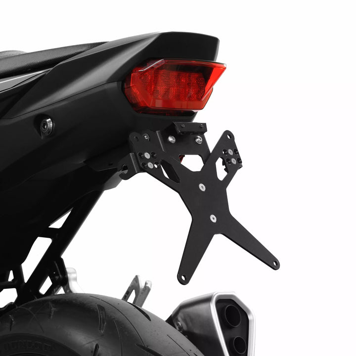 The License Plate Holder is Extremely Durable and Weather Proof., Black Powder Coated. , The License Plate Holder Can Be Used For Any Kind of License Plate (175mm Width)., No Modification of Fairing Required., Stepless Adjustment of Rake Angle., Indicator Support Adjustable in 3 Positions. Plate., Special Indicator Light Mounts (Sold Separately) Required for Stock Indicator Lights., Kit Includes: 1 License Plate Holder Incl. Mounting Kit., LED License Plate Light "e Approved" Incl. Support., Back Light With Support. Disclaimer: Important: For the use of this license Plate Holder with the oem Turn Signals of Ducati Models (2015 - Present) A Special Holder is Needed (Zieger Turn Signal Adapter and Duc. Parts Europe Part Number: 20301971. Vendor Number: 10005790).